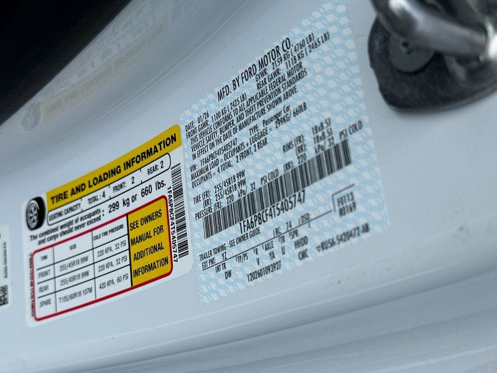 2026 Ford Mustang 2D Coupe GT RWD Oxford White 10-Speed Automatic 5.0L V8 Ti-VCT