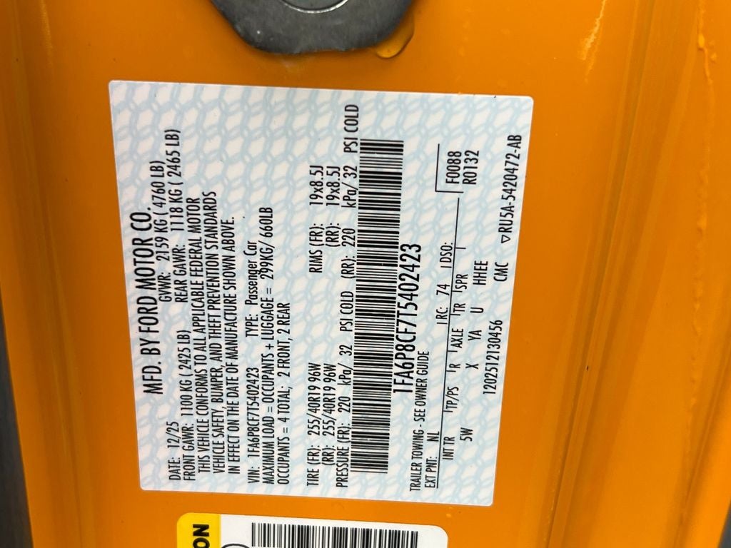 2026 Ford Mustang 2D Coupe GT Premium RWD Orange Fury Metallic Tri-Coat 10-Speed Automatic 5.0L V8 Ti-VCT