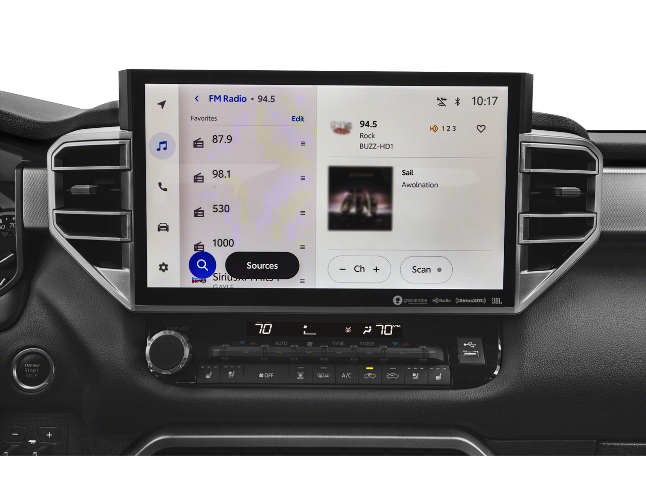 Slip into the spacious and well-appointed cabin, where you'll find luxurious SofTex-trimmed, heated and ventilated front seats, along with a power-adjustable driver's seat and a panoramic moonroof to let in natural light. The intuitive infotainment system and advanced safety technologies, including Safety Connect and Rear Camera, provide a driving experience that is both thrilling and secure.